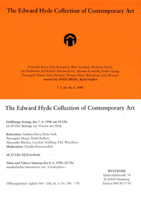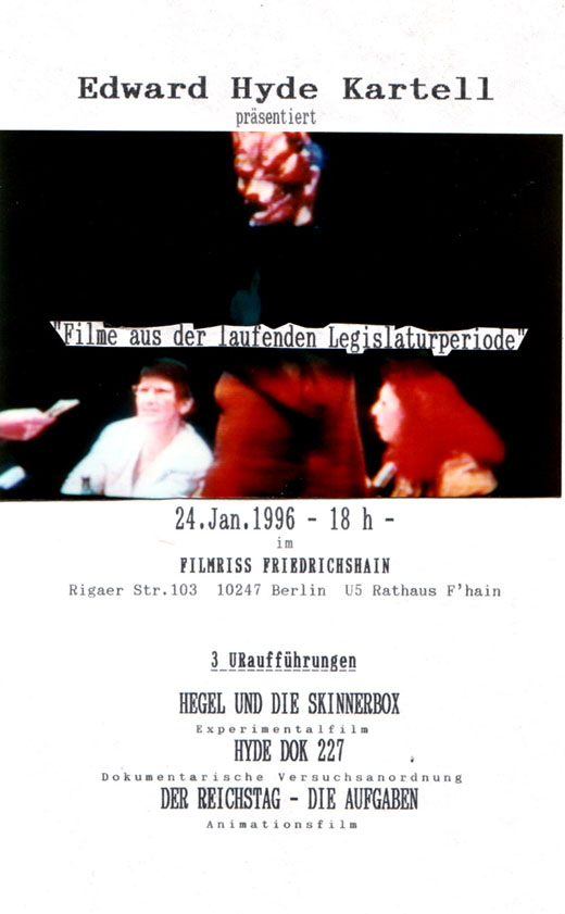 DOKUMENTE > Hyde Manifest > Hyde Magazine > HYDE KONGRESS 1992 # flyer/prog. > 17 GEMÄLDE # hommage an marina abramovic! > FILME aus der laufenden Legislaturperiode # prog > THE EDWARD HYDE COLLECTION OF TEMPORARY