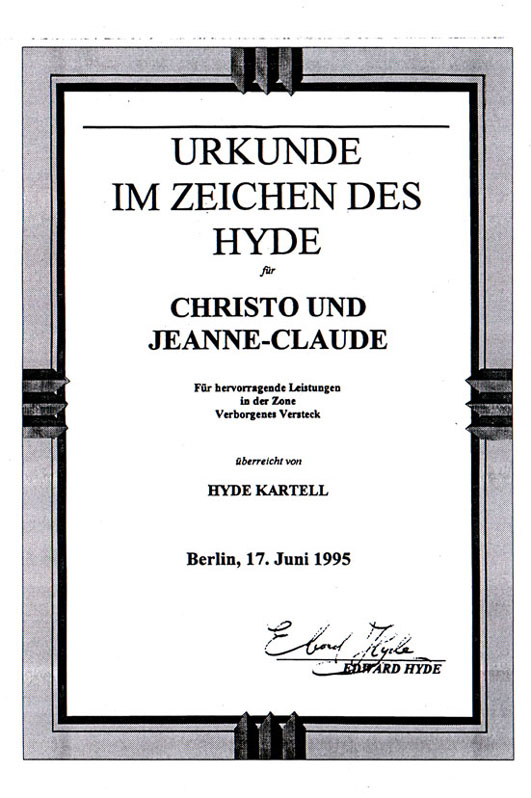 ART # prog > HYDE.URKUNDE für CHRISTO & JEANNE